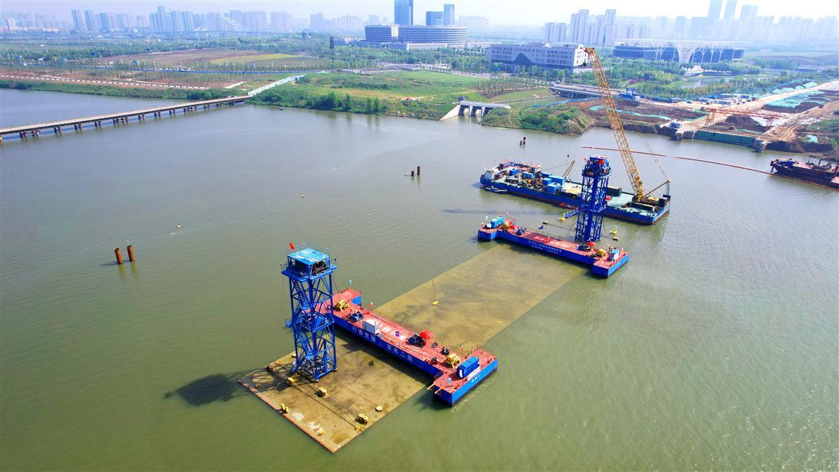 5月22日,位于襄阳市城市绿心的鱼梁洲上,工程车辆穿梭,塔吊林立、器械轰鸣。汉江水下25米处,两次穿越汉江的10节万吨沉管组成的隧道正在“内装修”。