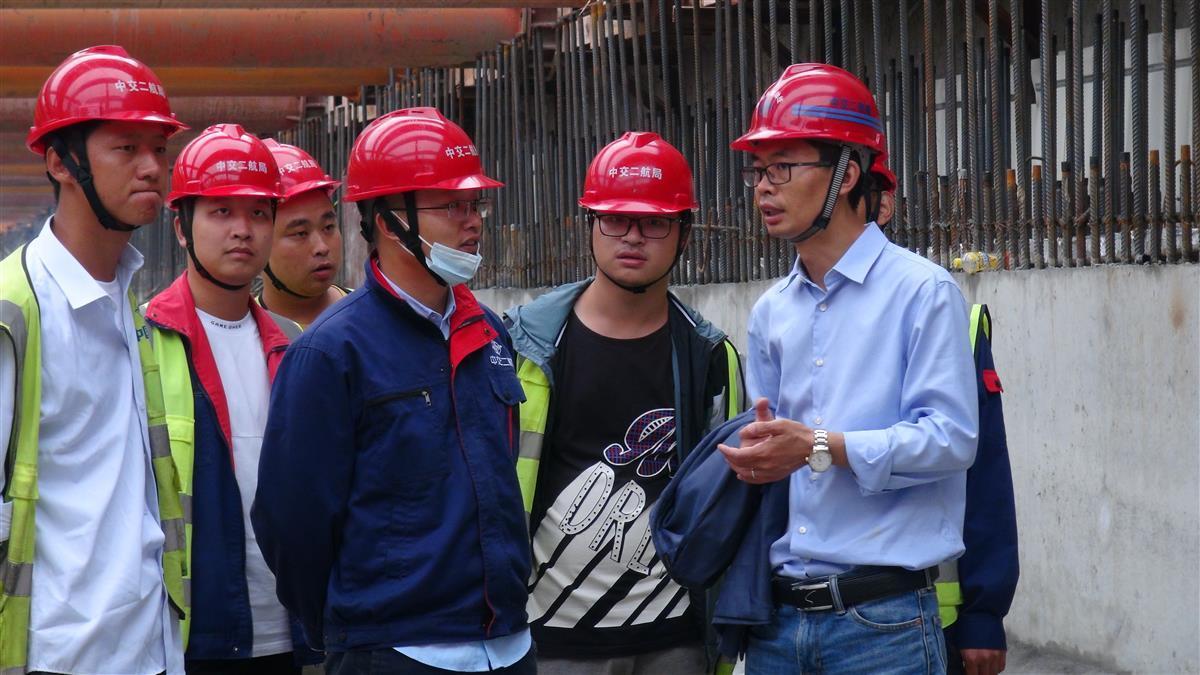 孙晓伟(右一)和团队在一线研究沉管技术。
