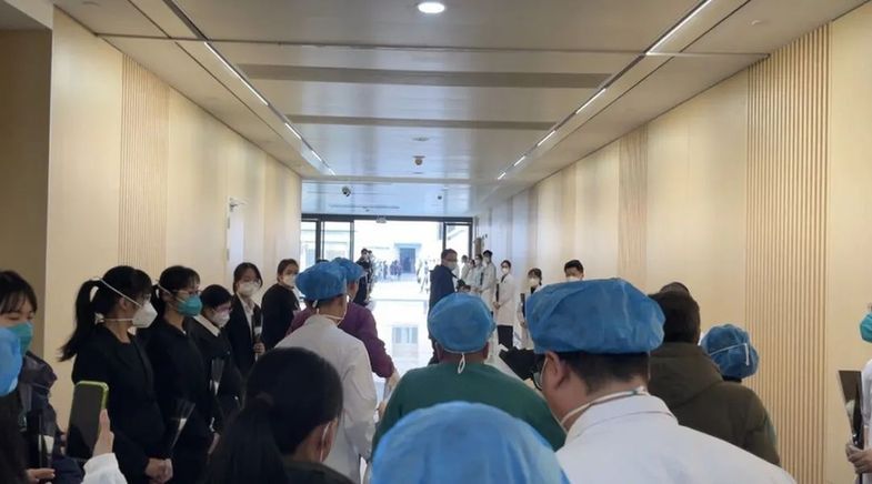 1月6日上午,易海欣生前同班同学、班主任,以及医院移植医学中心全体医务者,医院后勤人员,自发来到广西医科大学第二附属院重症病房外等候,要和易海欣同学做最后的道别,然后目送她进入手术室做器官移植。