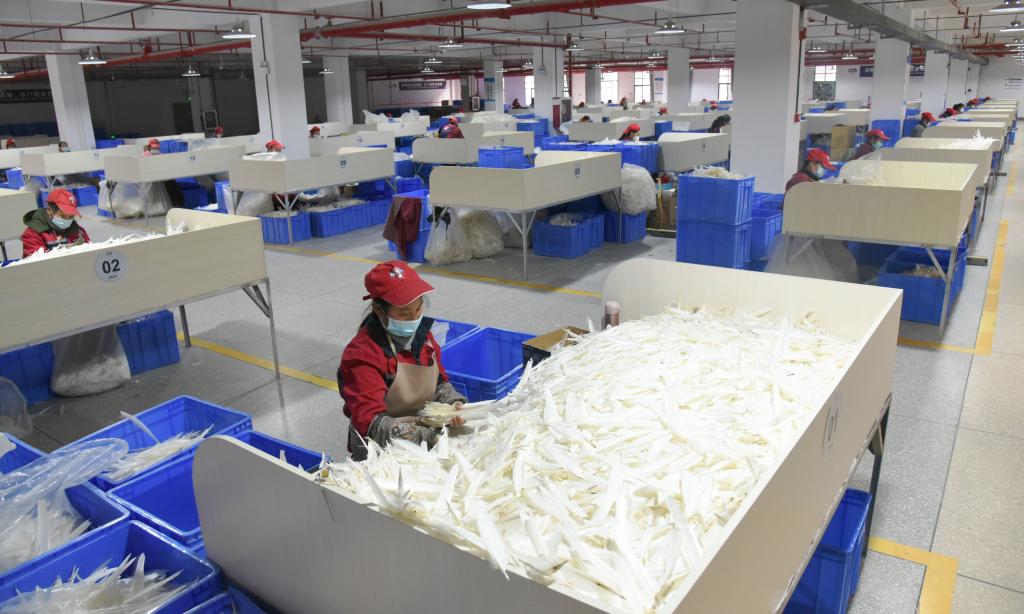 羽毛球生产包括洗毛、晒毛、分级、插球、成品全检等38道工序,几乎每道工序都需要工人严格把控。家在附近的40岁工人龙竹香自2018年起就到园区上班,工作岗位是成品全检。她说,在家门口就能稳定就业,还能学习到技术,“很是满意”。