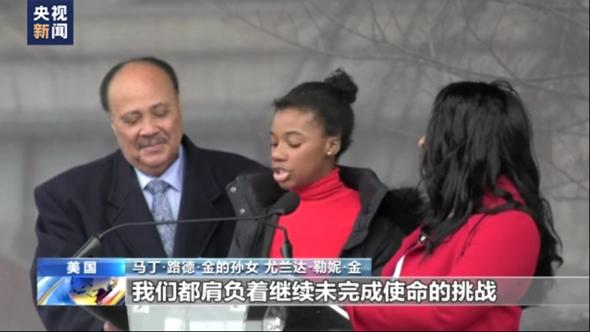 马丁·路德·金的孙女 尤兰达·勒妮·金:我们都肩负着继续未完成使命的挑战,在第37个马丁·路德·金纪念日来临之际,我们必须要坚持(马丁·路德·金的)精神。