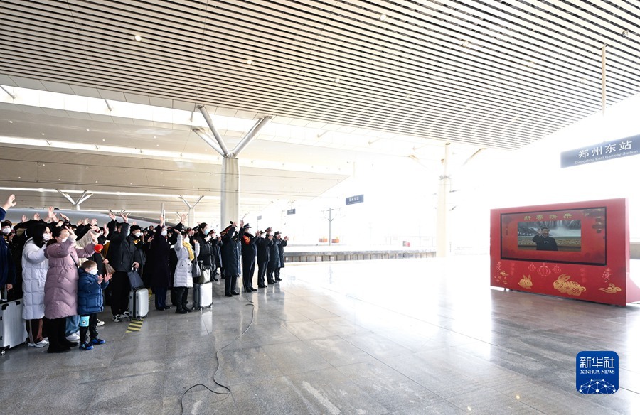 1月18日,中共中央总书记、国家主席、中央军委主席习近平在北京通过视频连线看望慰问基层干部群众,向全国各族人民致以新春的美好祝福。这是习近平通过视频连线,同郑州东站铁路客运干部职工和旅客亲切交流。新华社记者 李涛 摄