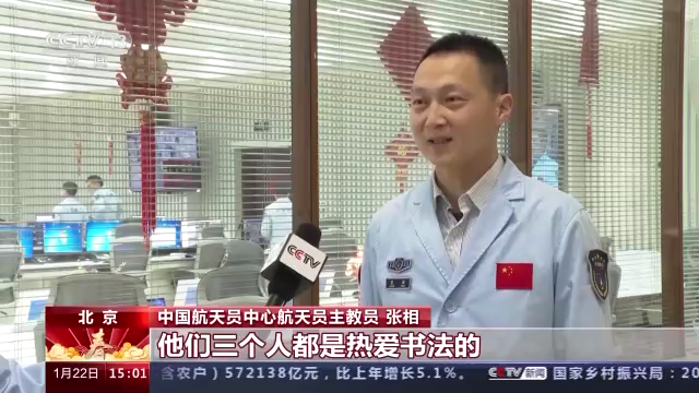 中国航天员中心航天员主教员 张相:神舟十五号乘组有一个共同的爱好,他们三个人都是热爱书法的,这次他们也将在轨创作春联,写完春联之后还要布置在咱们空间站里面。