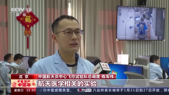 中国航天员中心飞控试验队总调度 陈军伟:其中大年三十、初一、初二,我们主要是安排他的节日活动,初三开始他要进行一些航天医学相关的实验,后续有三到四次出舱,他们在春节期间开始准备后续的相关出舱工作。我们地面保障人员还是要24小时坚守岗位,然后支持航天员的所有在轨工作,然后为后续工作打下良好的基础。