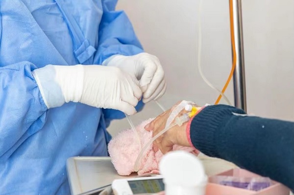 于老先生今年85岁。刚入院时,他肺部感染重、并发症多,氧合状态很差。在给予高流量吸氧和俯卧位治疗后,于老先生的病情逐渐好转,康复出院的曙光近在眼前。