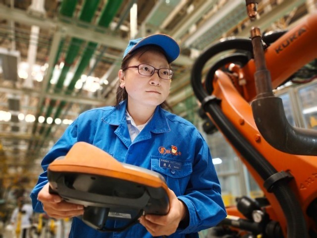 大年初二,樊凡回到西安市区的父母家一起过年。在2022年获得“全国五一劳动奖章”的她让家人很是骄傲。樊凡今年42岁,是陕西汽车控股集团有限公司车身厂的一名维修电工。与传统电工不同的是,她维修的是自动化生产线上的机器人,通过一组组程序控制着车间里的庞然大物。