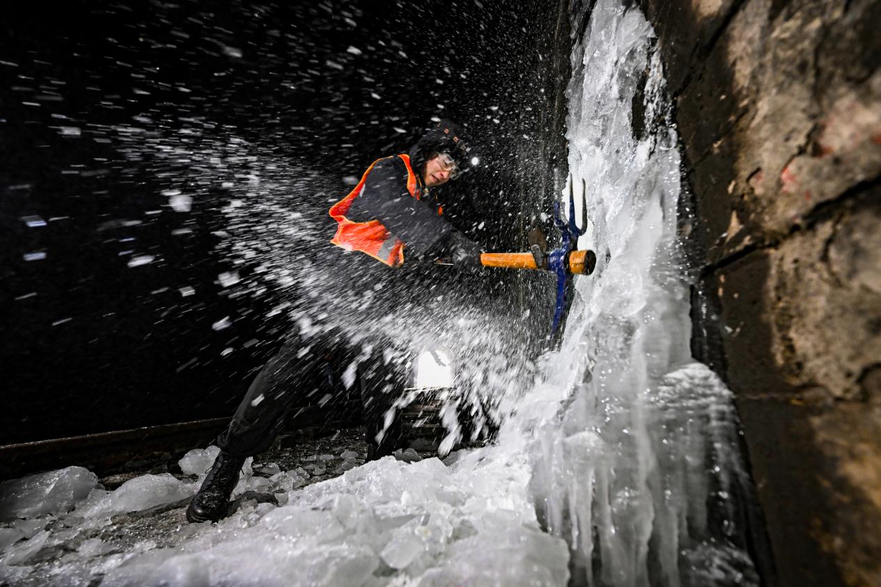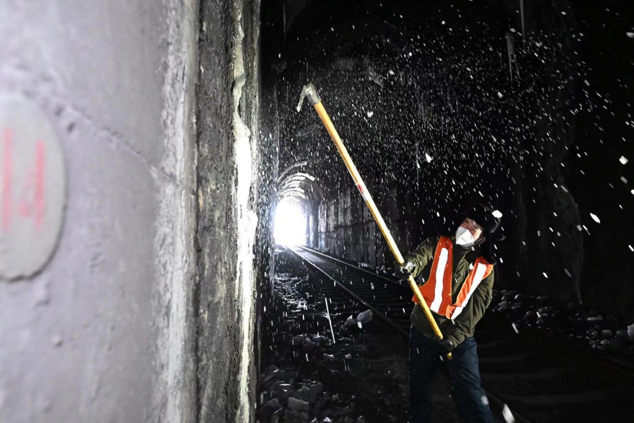 为了清除隧道内的“障碍物”让列车免受袭扰,王伟和队友们24小时待命,随时出动,半夜打冰是他们冬季工作的常态。