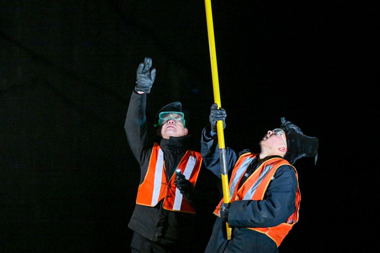 举着6米长的特制打冰工具,工友们正在清理拱顶冰柱。(图片由太原局太原工务段赵哲昌提供)