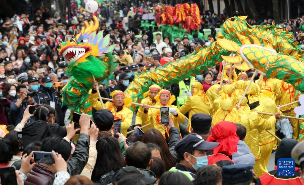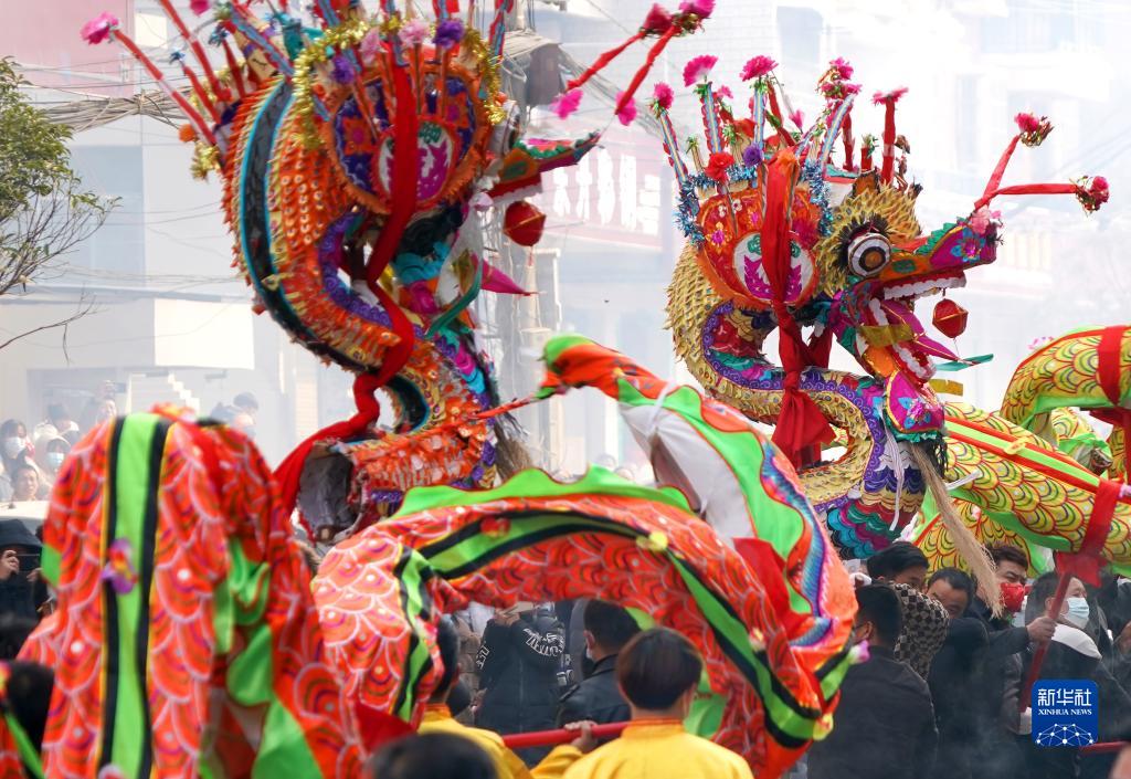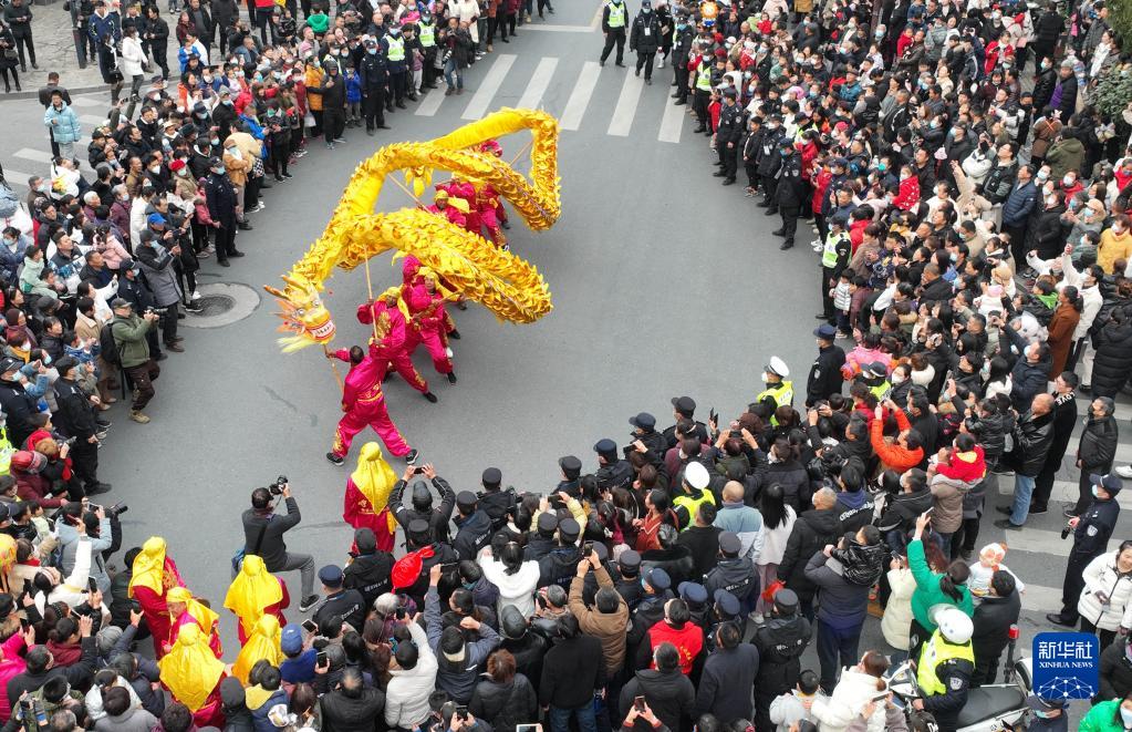 2月4日,浙江省湖州市德清县乾元镇第23届浙北乾龙灯会上,舞龙队在巡游表演。