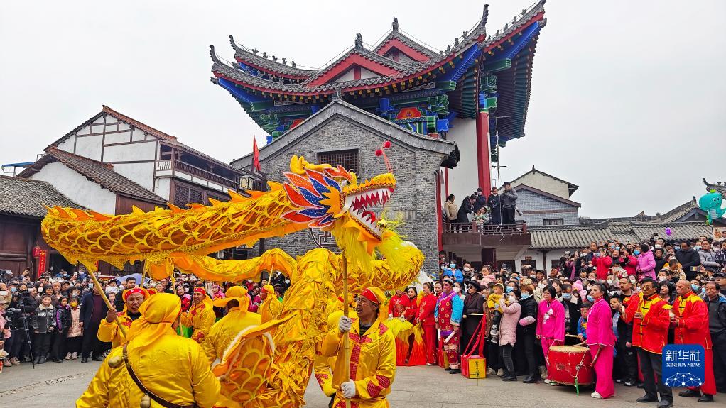 2月4日,陕西省汉中市城固县的民间艺人在表演舞龙。