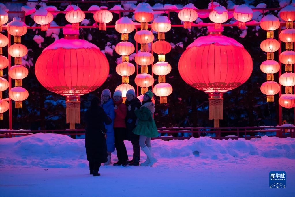 2月4日,游客在位于黑龙江省牡丹江市的大海林林业局有限公司双峰林场雪乡景区内拍照留念。