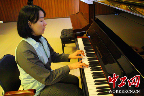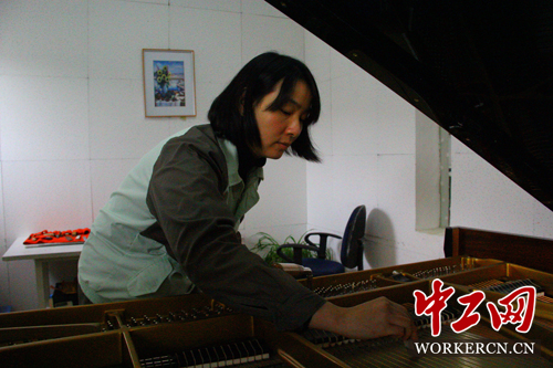 穿着工作服,坐在钢琴前,指尖在键盘间轻轻滑过,优美的琴声从指间流出。本以为每天工作中面对钢琴,生活中自然要剔除钢琴的影子。没想到的是,吴宝卿竟然化工作为兴趣,除去每天的工作外自学钢琴弹奏。从不认识“小蝌蚪”“一指禅”到单手弹奏再到和旋演奏,吴宝卿自学乐理知识、五线谱识读。而整音工作对音感音准的高要求在她对钢琴的实际弹奏中一次次得到提升。可以说,工作就是吴宝卿的兴趣。