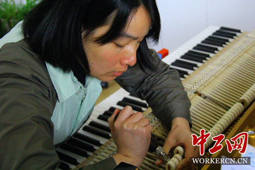 琴声悠扬,绵长浑厚的音色拨动听者的心弦。发掘出这些钢琴音色潜力的人叫吴宝卿,宜昌金宝乐器环高分公司整音质量专员,首席整音技师,国家资格认证三级高级技能调律师。如果不说,恐怕很难想到她曾是一位辍学女,工作以前从未见过钢琴。