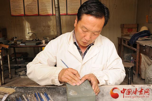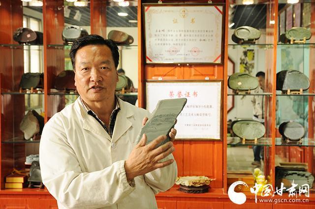 他就是国家级制砚艺术大师、甘肃省一级工艺美术大师,甘肃省卓尼洮砚协会会长、卓尼县喇嘛崖洮砚有限责任公司董事长王玉明。