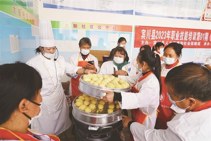 大理日报讯(通讯员 沈洪斌 彭丽华 文/图) 2月15日,宾川县2023年职业技能培训首期中式面点师培训班在金牛镇大新社区正式开班,48名社区居民参加为期15天的培训,拉开了宾川县2023年职业技能培训工作的序幕。
