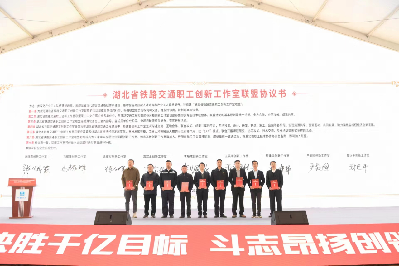 2月21日上午,在2023年全省双“百千万”劳动和技能竞赛启动大会上,湖北省铁路交通职工创新工作室联盟正式宣告成立。成立仪式上,中铁大桥局集团有限公司等9家单位创新工作室领衔人签订了联盟协议。