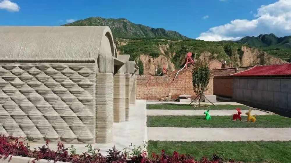 娟子家的这栋农宅,是全国第一栋完全由“3D混凝土打印”建造的房子,农宅是灰色墙体,拱形房顶,在村里一众农房中格外出挑。
