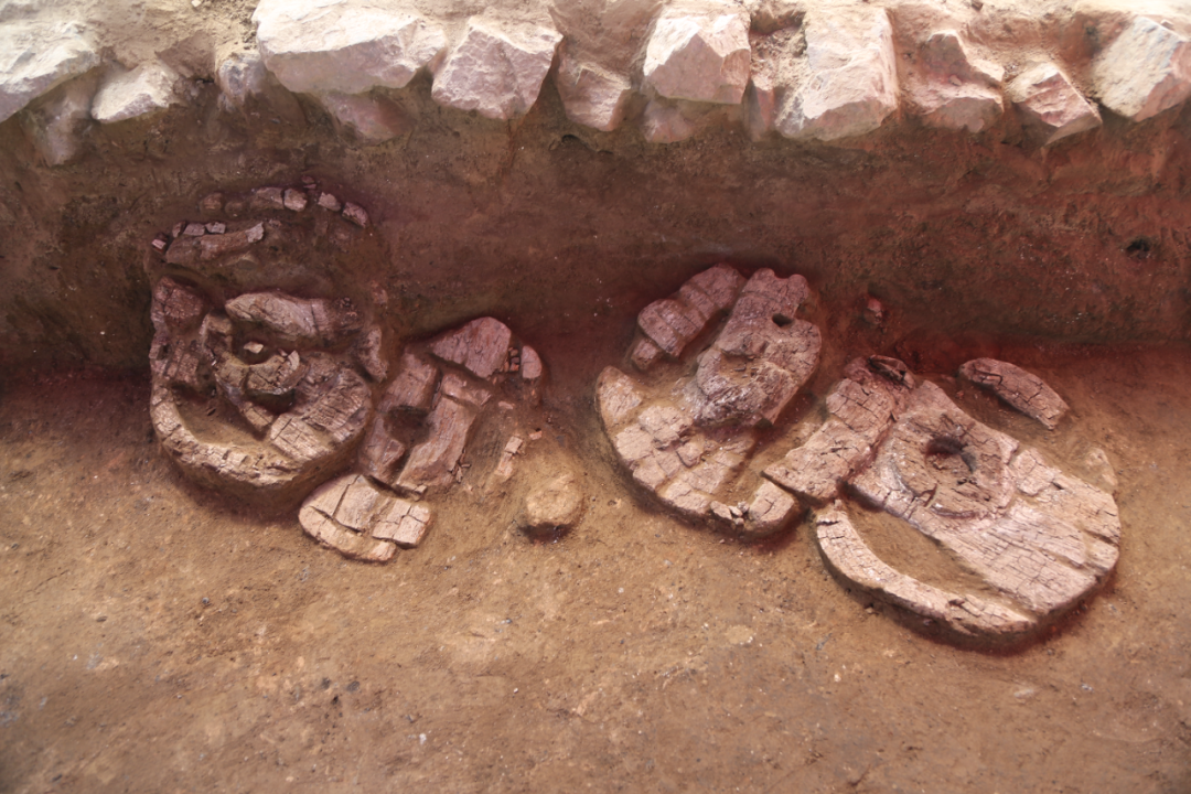 新疆尼勒克吉仁台沟口遗址高台遗存出土的木质车辆构件。