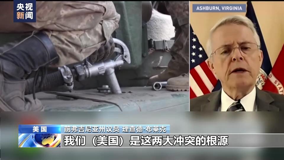 前弗吉尼亚州议员 理查德·布莱克:美国在全球范围内集结军事力量,颠覆了伊拉克原来的政权,美国用世界另一端的军事力量颠覆了乌克兰原来的政权,美国是这两大冲突的根源。