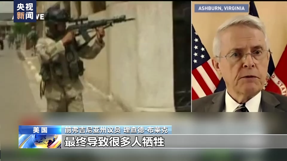 前弗吉尼亚州议员 理查德·布莱克:讽刺的是美国在伊拉克并没有赢,最终导致很多人牺牲。数据显示,超过一百万伊拉克人死亡。