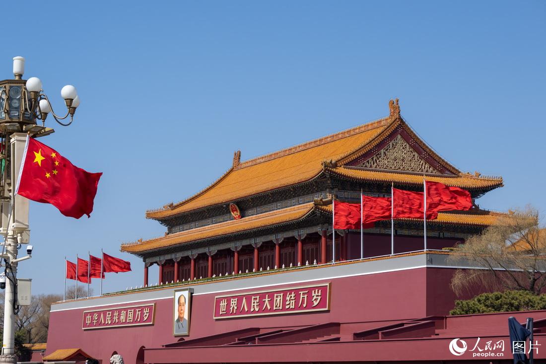 原标题:全国两会召开在即 北京天安门广场红旗迎风招展