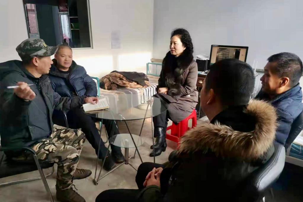 2022年2月16日,冉慧(右五)和天山堡村的村民座谈,听取大家的意见建议。新华社发(冉川摄)