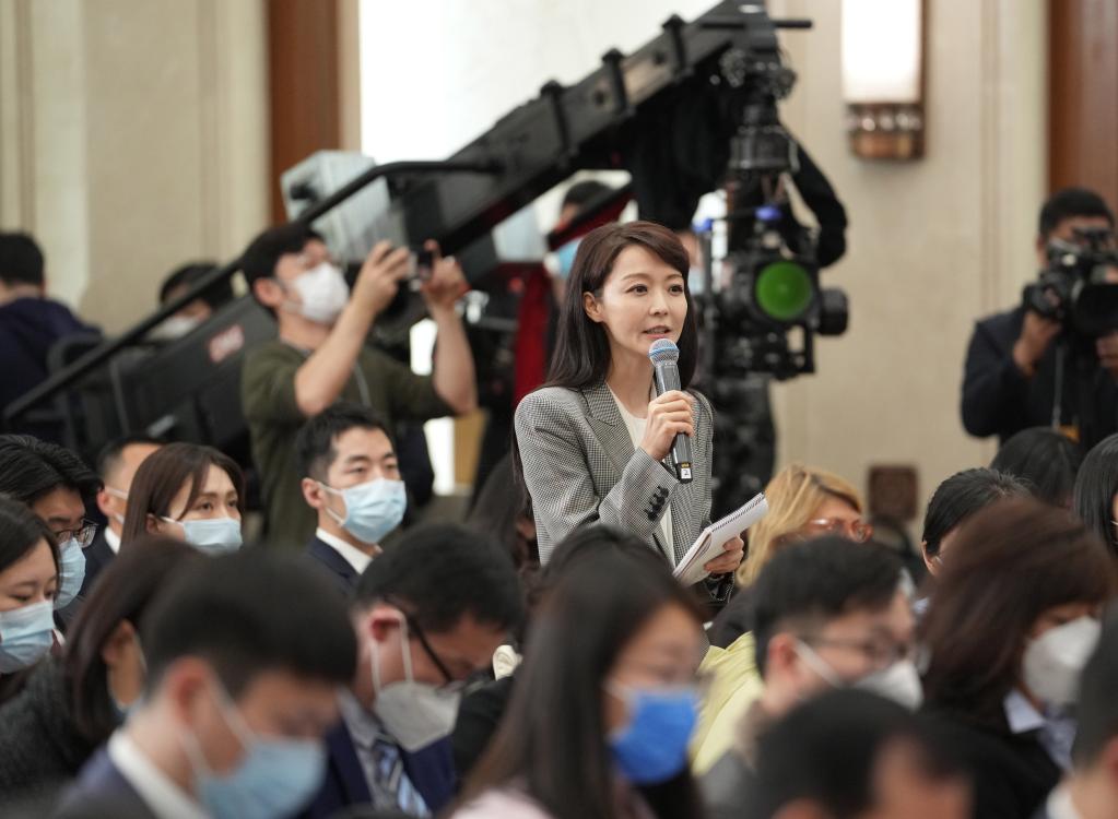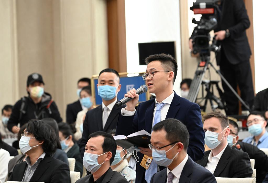 3月3日,全国政协十四届一次会议新闻发布会在北京人民大会堂举行,大会新闻发言人郭卫民向中外媒体介绍本次大会有关情况并回答记者提问。这是记者在发布会上提问。