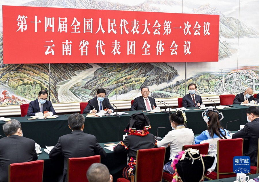 3月5日,中共中央政治局常委李强参加十四届全国人大一次会议云南代表团的审议。新华社记者 殷博古 摄