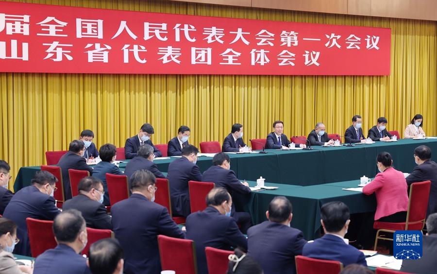 3月5日,国务院副总理韩正参加十四届全国人大一次会议山东代表团的审议。新华社记者 姚大伟 摄
