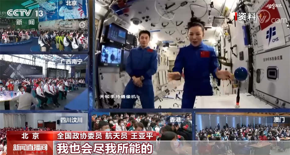 全国政协委员 航天员 王亚平:那种亲手为他们播种梦想、开启追梦旅程的感觉,真的是太棒了。太空授课让他们感受到了航天、感受到太空的这种神奇,让他们产生了一些向往。所以他们毕业无论是在面临学业和职业选择的时候,会选择航天,这也是让我感到无比的幸福和欣喜。在这个过程当中,其实也是激励着我不断投身航天科普教育。