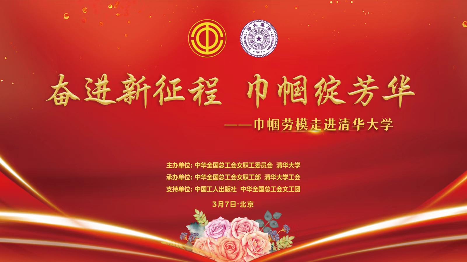 直播回顾丨奋进新征程 巾帼绽芳华——巾帼劳模走进清华大学(一) 在历史的长河中,一代又一代女性劳动者用劳动谱写奋斗的篇章,用劳动精神引领时代前进的步伐。为深入学习贯彻习近平新时代中国特色社会主义思想和党的二十大精神,大力弘扬劳模精神、劳动精神、工匠精神,中华全国总工会女职工委员会联合清华大学于2023年3月7日共同举办“奋进新征程 巾帼绽芳华——巾帼劳模走进清华大学”活动。中工网首页、微博、抖音、视频号同步直播!在第113个“三八”国际妇女节来临之际,祝广大妇女同胞节日快乐!