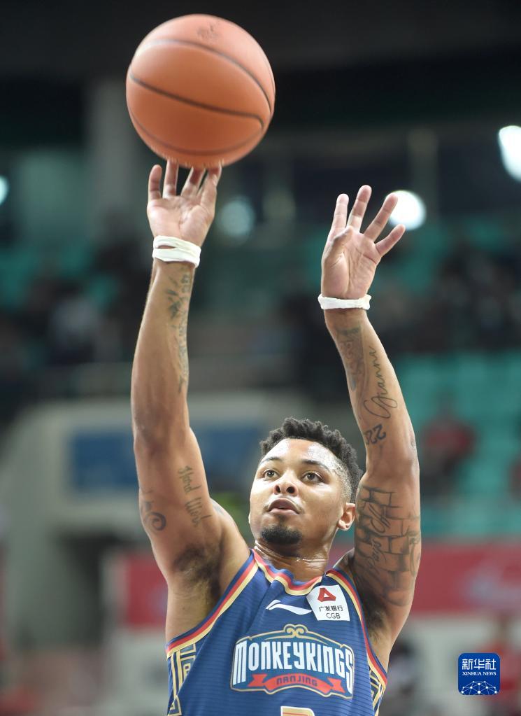3月6日,南京同曦宙光队球员皮特森在比赛中投篮。新华社记者 卢汉欣 摄