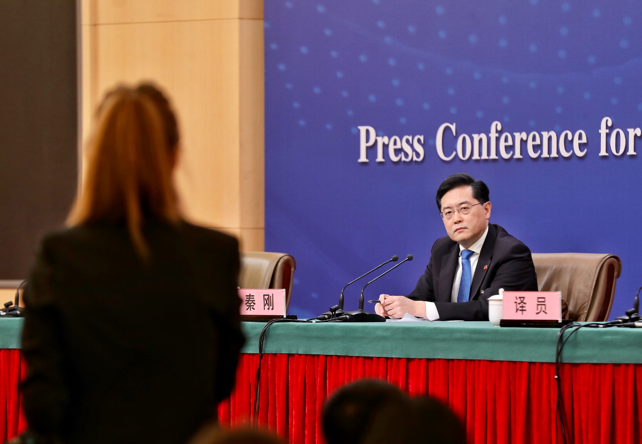 7日上午10时,十四届全国人大一次会议在梅地亚新闻中心举行记者会,就“中国外交政策和对外关系”相关问题,外交部长秦刚答记者问。