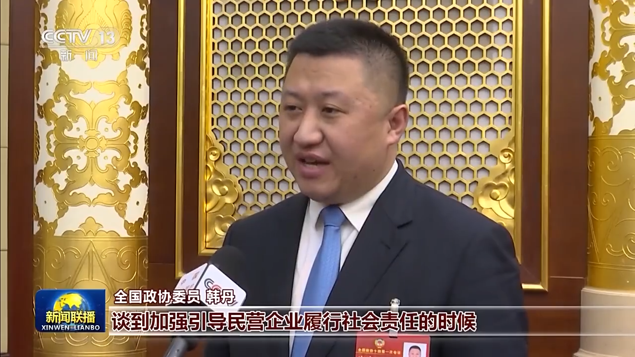 全国政协委员 韩丹:谈到加强引导民营企业履行社会责任的时候,总书记谈到要做富而有责、富而有义、富而有爱的民营企业,尤其是在共同富裕这些方面,去发挥我们民营经济的重要作用。