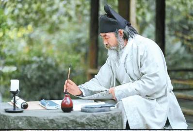 陈光宪在杜甫草堂穿着汉服,形似杜甫。