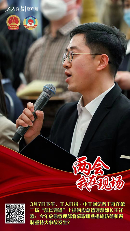 3月7日下午,第十四届全国人民代表大会第一次会议举行第二场“部长通道”采访活动。工人日报·中工网记者王群提问应急管理部部长王祥喜:今年应急管理部将采取哪些措施防范和遏制重特大事故发生?