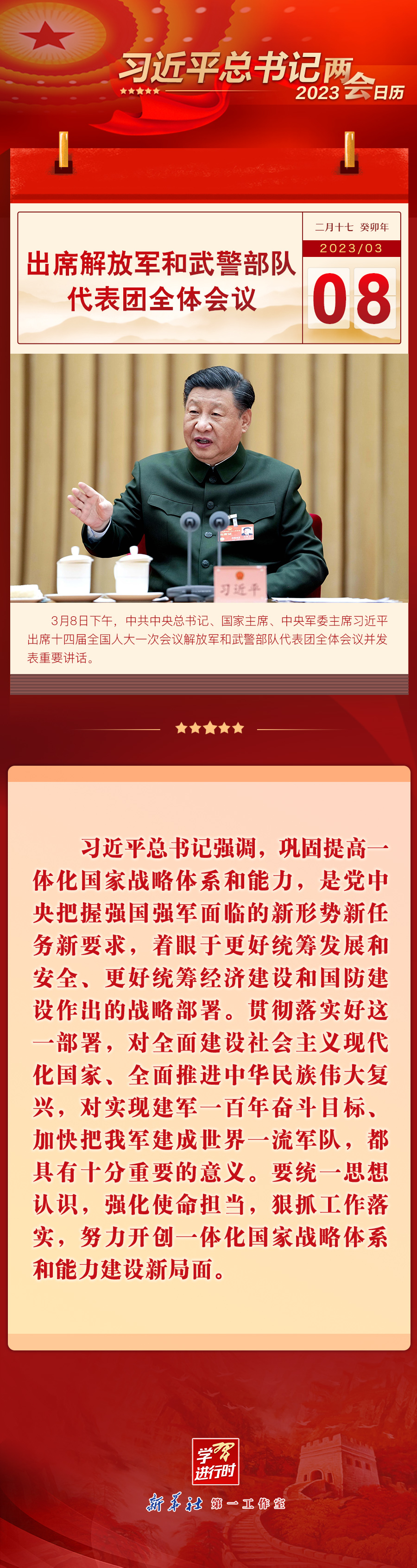 习近平总书记2023两会日历:3月8日出席解放军和武警部队代表团全体会议