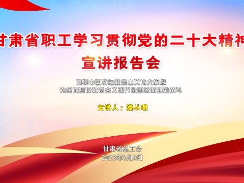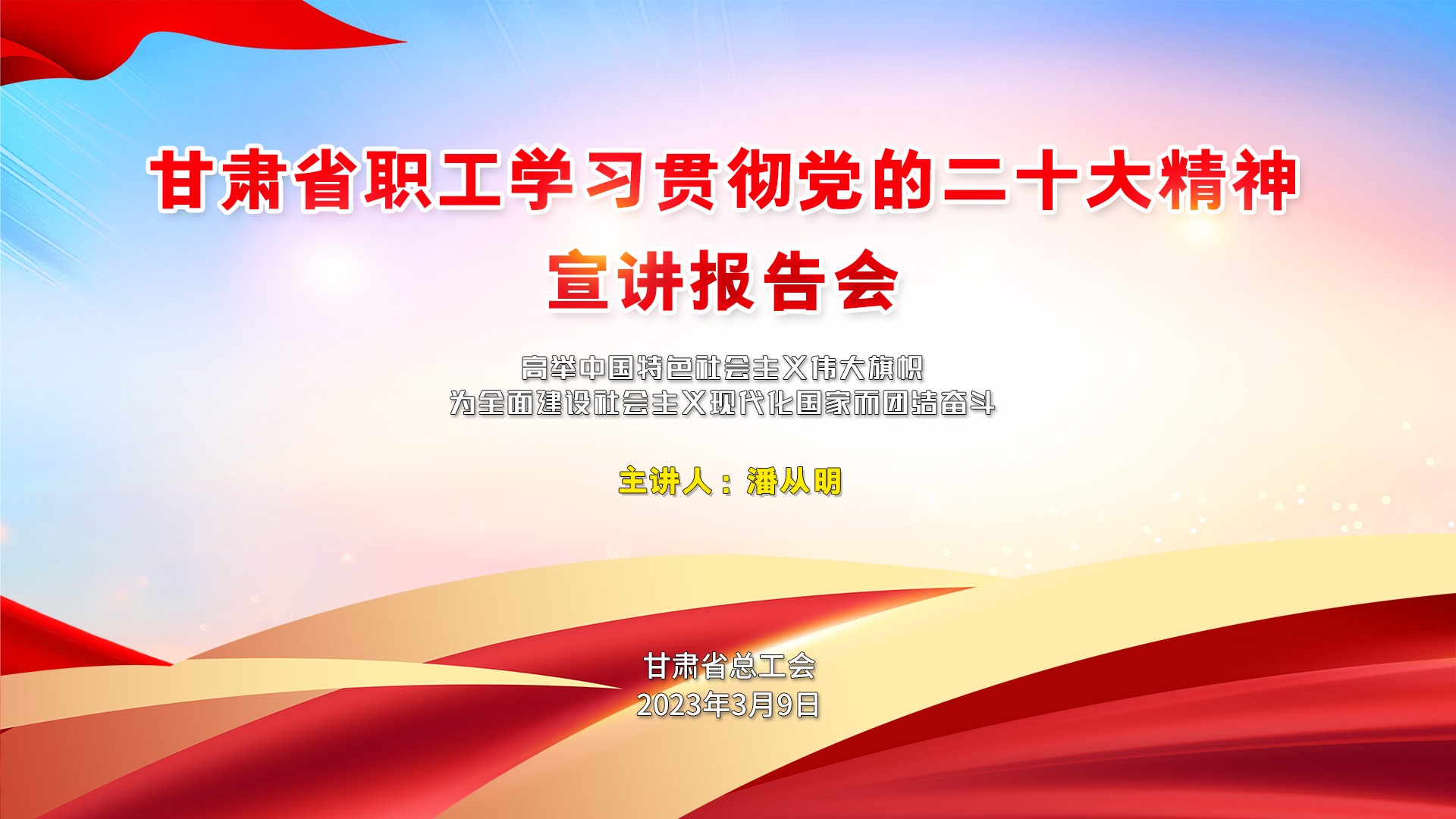 直播回顾丨甘肃省职工学习贯彻党的二十大精神宣讲报告会(1) 为深入学习宣传贯彻党的二十大精神,进一步加强职工思想政治引领,提升广大职工的思想理论水平,切实把思想和行动统一到党的二十大精神上来,踔历奋发、勇毅前行,在新时代新征程上不断开创党的工运事业和工会工作新局面,3月9日,甘肃省总工会邀请党的二十大代表、金川集团公司潘从明同志举办甘肃省职工学习贯彻党的二十大精神宣讲报告会。中工网首页、微博、视频号同步直播!