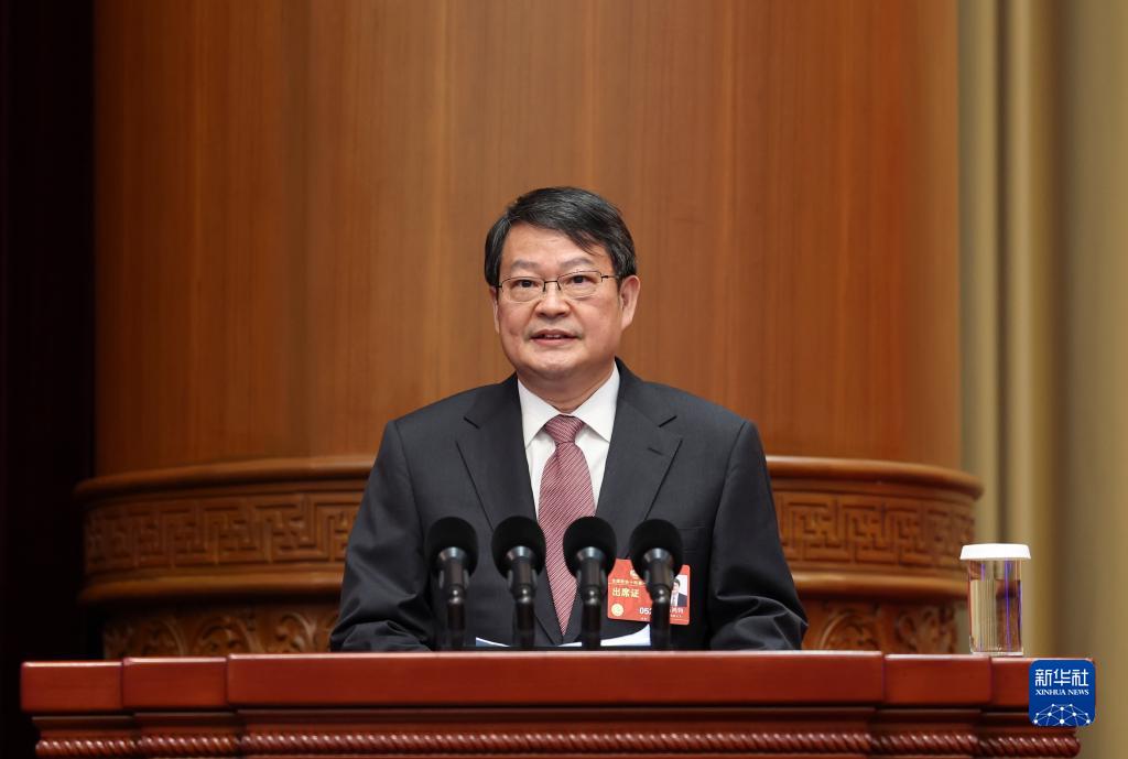 3月9日,全国政协十四届一次会议举行视频会议,委员作大会发言。这是在主会场,徐涛委员代表农工党中央作大会发言。新华社记者 丁海涛 摄