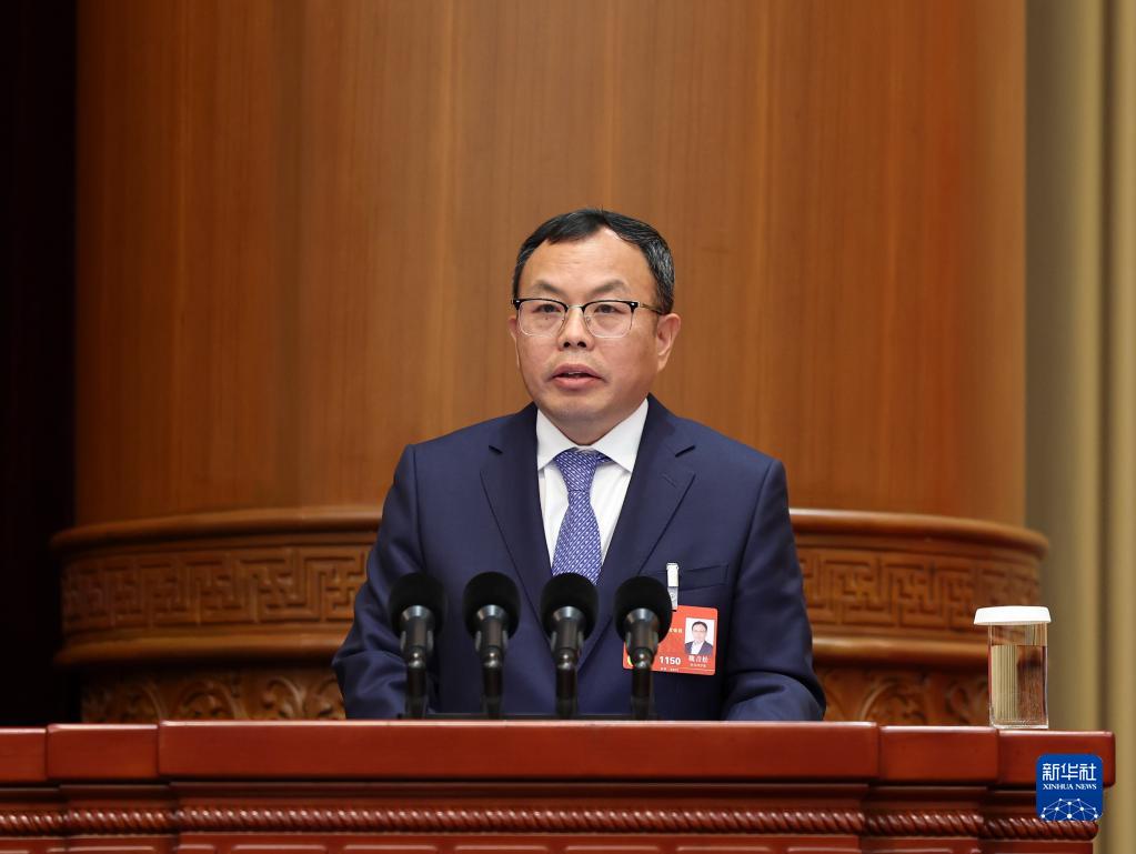 3月9日,全国政协十四届一次会议举行视频会议,委员作大会发言。这是吉宏忠委员在主会场作大会发言。新华社记者 丁海涛 摄