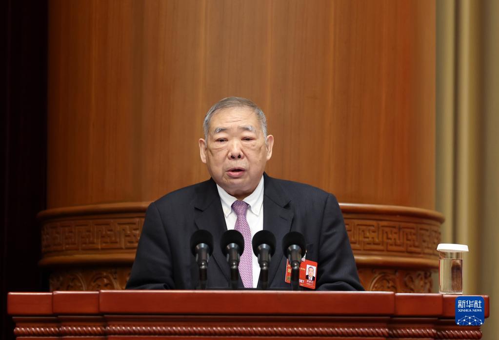 3月9日,全国政协十四届一次会议举行视频会议,委员作大会发言。这是在主会场,刘忠范委员代表九三学社中央作大会发言。新华社记者 丁海涛 摄