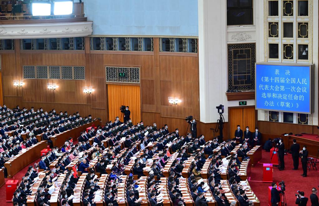 原标题:十四届全国人大一次会议举行第三次全体会议