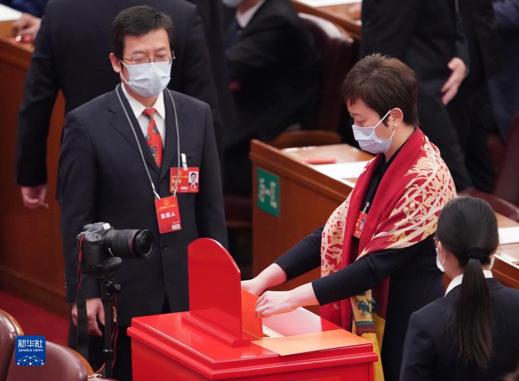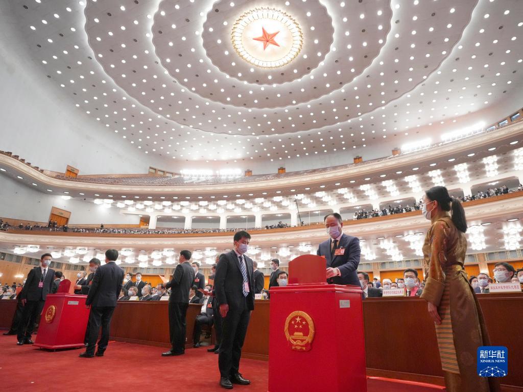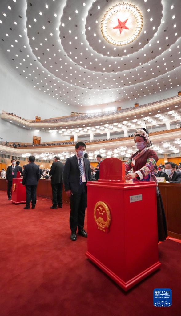 3月10日,十四届全国人大一次会议在北京人民大会堂举行第三次全体会议。这是代表在投票。