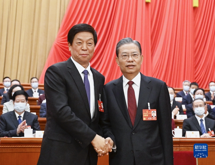 3月10日,十四届全国人大一次会议在北京人民大会堂举行第三次全体会议。赵乐际当选为第十四届全国人民代表大会常务委员会委员长。这是赵乐际同十三届全国人大常委会委员长栗战书握手,相互致意。