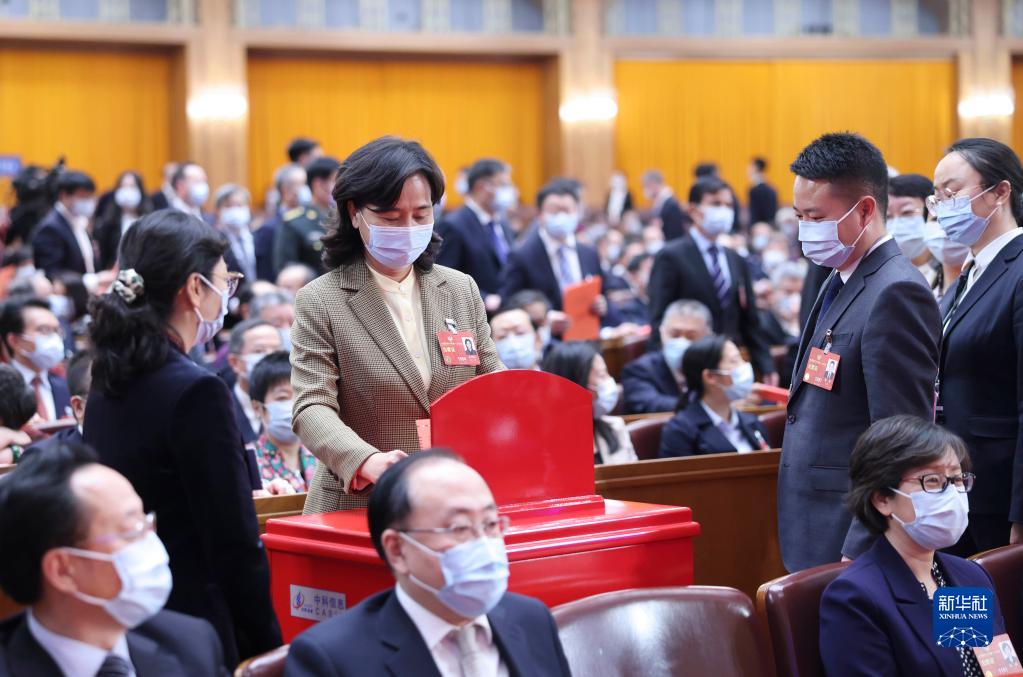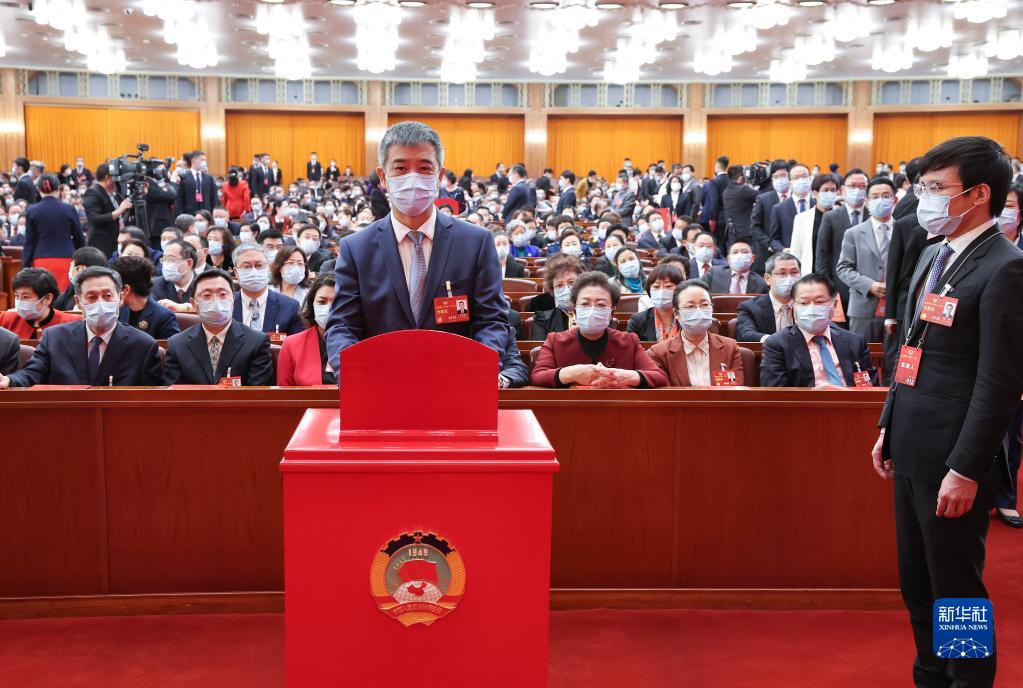 3月10日,全国政协十四届一次会议在北京人民大会堂举行第三次全体会议。这是委员在投票。