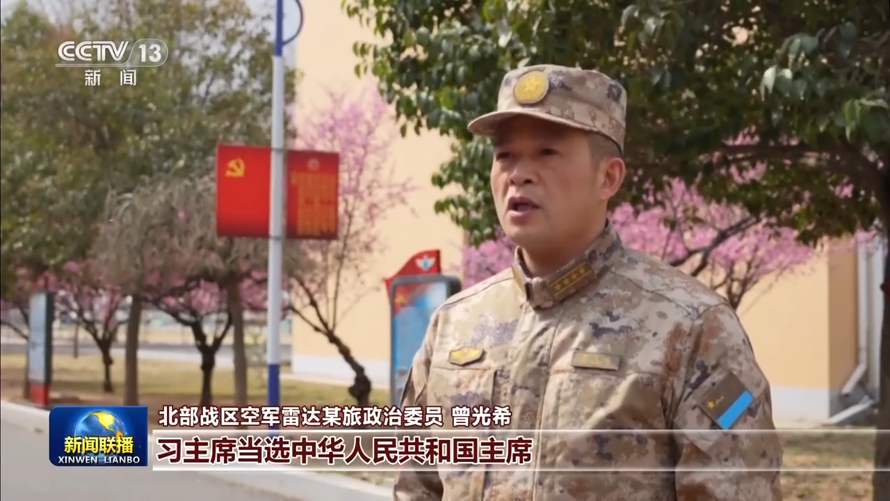 北部战区空军雷达某旅政治委员 曾光希:习主席当选中华人民共和国主席、中华人民共和国中央军事委员会主席,是历史和人民的共同选择、郑重选择、必然选择,反映了我们共同的愿望和心声,我们坚决拥护,衷心拥戴。