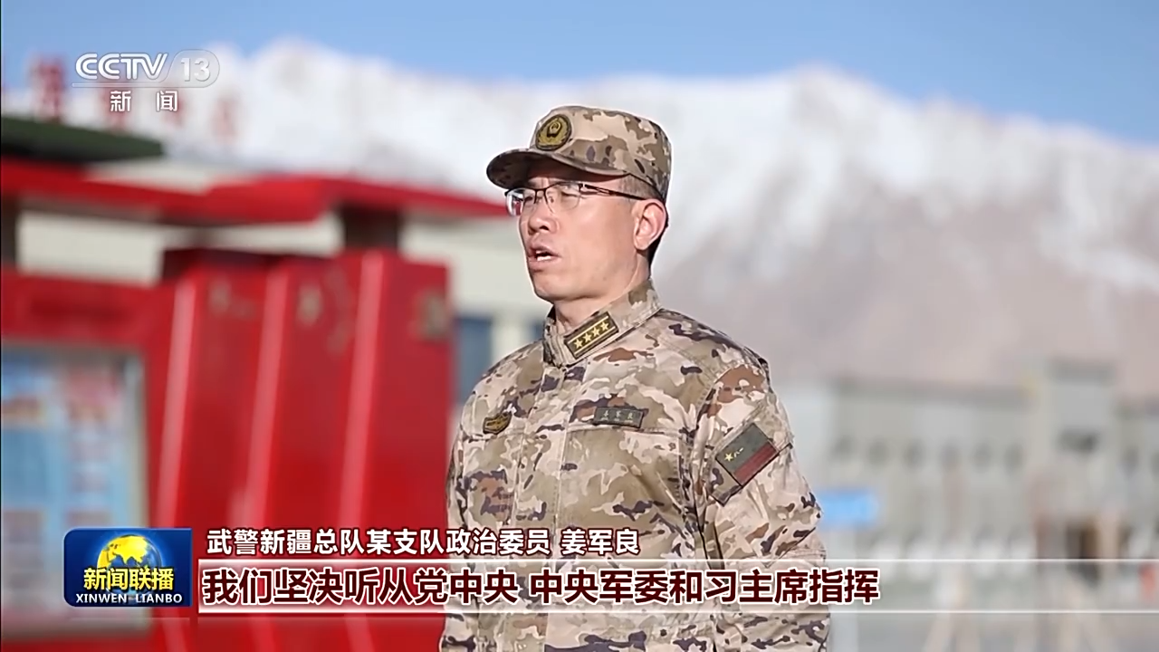 武警新疆总队某支队政治委员 姜军良:作为武警反恐尖刀部队,我们坚决听从党中央、中央军委和习主席指挥,深刻领悟“两个确立”的决定性意义,全面加强练兵备战,巩固提高一体化国家战略体系和能力,为如期实现建军一百年奋斗目标、加快把人民军队建成世界一流军队作出新的更大贡献。