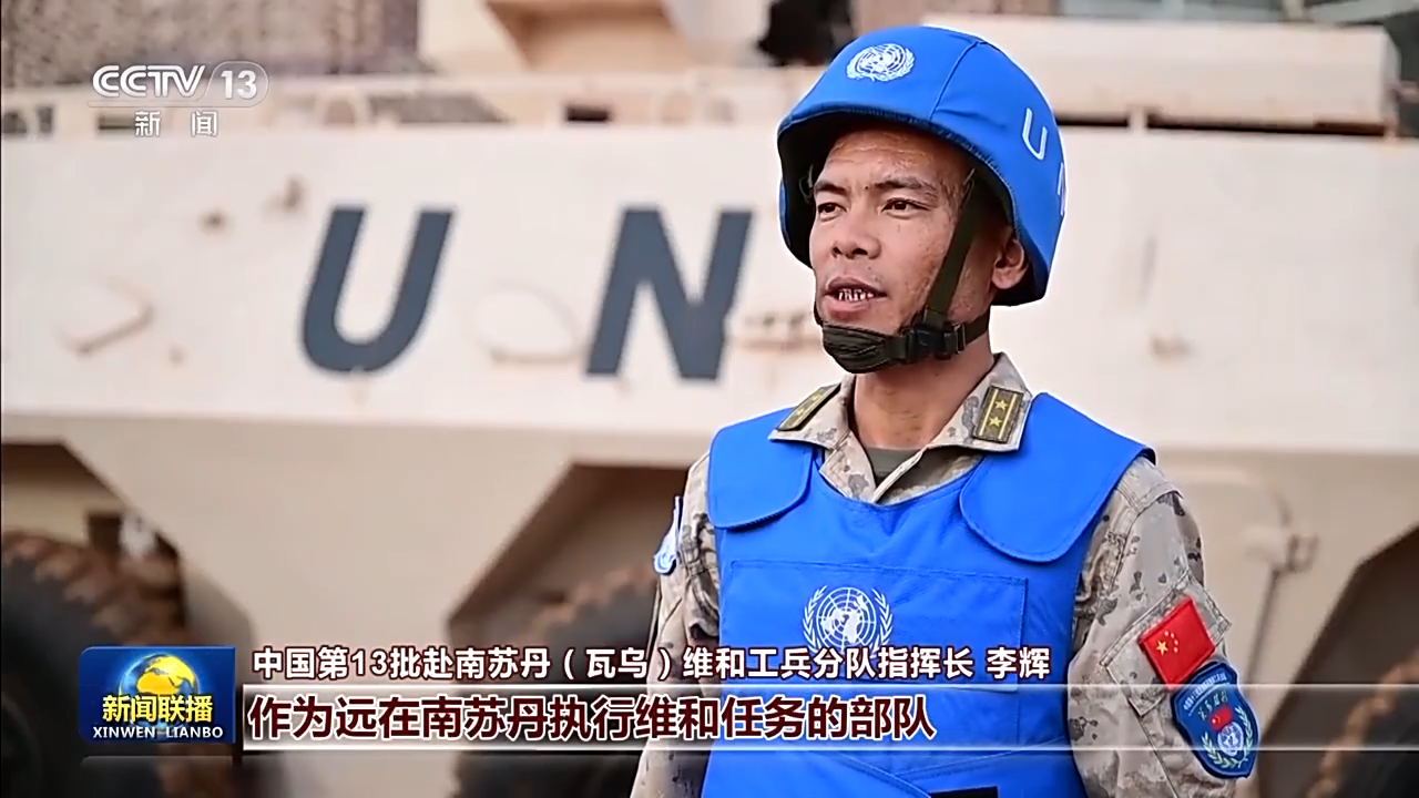 中国第13批赴南苏丹(瓦乌)维和工兵分队指挥长 李辉:作为远在南苏丹执行维和任务的部队,我们坚决拥护习主席当选新一届国家领导人。我们一定牢记主席嘱托,强化使命担当,弘扬实干精神,紧贴维和任务特点,全力以赴抓好贯彻落实,充分展示中国军队良好形象,为世界和平与发展贡献更多中国力量。
