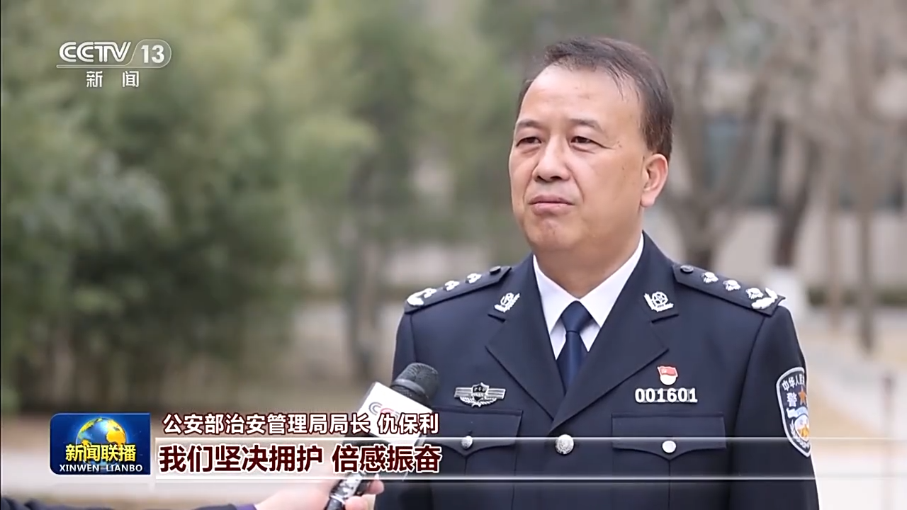 公安部治安管理局局长 仇保利:习近平同志全票当选,我们坚决拥护、倍感振奋。全国公安机关和广大公安民警将更加紧密地团结在以习近平同志为核心的党中央周围,努力为全面建设社会主义现代化国家创造安全稳定环境。