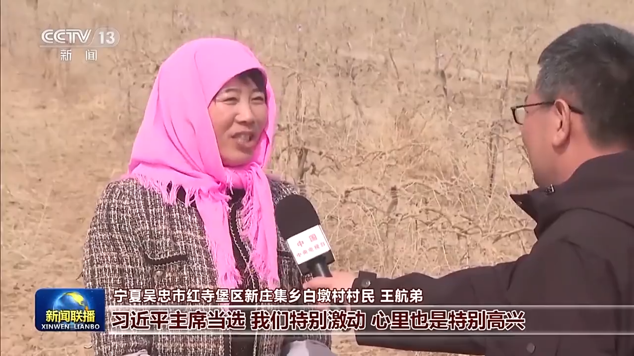 宁夏吴忠市红寺堡区新庄集乡白墩村村民 王航弟:习近平主席当选,我们特别激动,心里也是特别高兴。习近平主席带领着我们脱掉了穷帽子,都过上了好日子,我们打心底里拥护主席。大家一起奋斗,我们的生活一定越来越幸福。